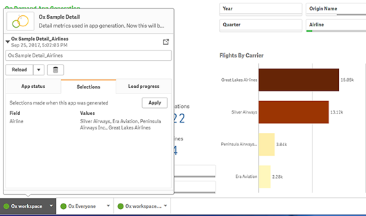 Information note On-demand apps generated by anonymous users are given default names indicating that they were generated by an anonymous user rather than a registered user. Anonymous users can change the names of generated apps just as registered users can change the names of their apps.The Apply button applies the selections listed on the generated on-demand app's Selections tab to the selection app.