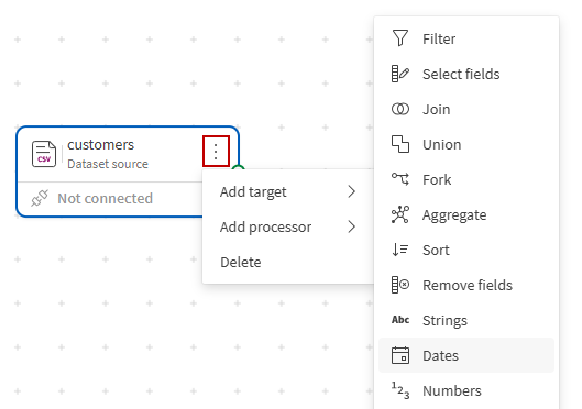 Click the action menu of the source, select Add processor, and click the processor of your choice.