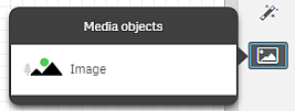 The story tool Media objects contains the media type image. You add an image to a story slide by dragging the Image type into the slide.