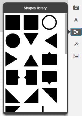 The Shapes library contains a number of shapes such as rectangles and circles to use on your story slides. You add a shape to a slide by dragging one of the shapes into a slide.