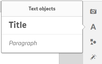 Text objects tool with the options to create a title or paragraph.