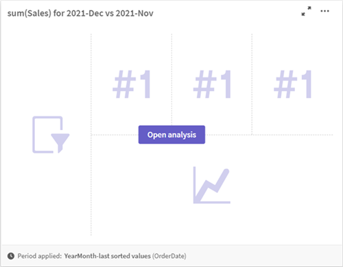 Sommige analysetypen, zoals dashboard met periodevergelijking, bieden meerdere gerelateerde visualisaties in plaats van één enkel diagram. Deze tonen een voorbeeld van het soort visualisaties dat in de analyse is opgenomen. Klik op Analyse openen om de analyse met gegevens te bekijken.