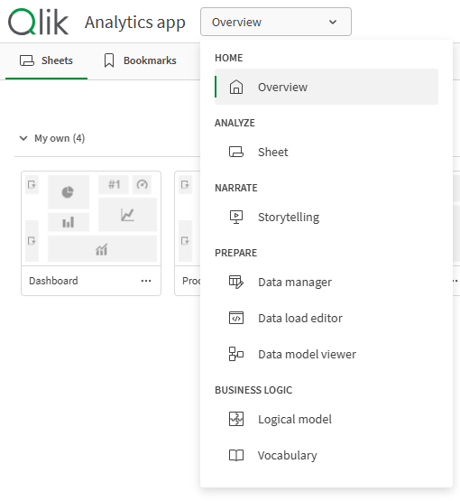 Se o hub tiver sido desativado pelo administrador, você irá para a visão geral do aplicativo quando o Qlik Sense for iniciado.