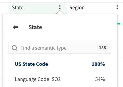 Um den Prozentsatz für jeden semantischen Typ anzuzeigen, klicken Sie in der Sample-Ansicht Ihres Datensatzes auf das Symbol