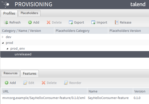 order in which they would be started in the Talend Runtime Container(s), if you have several features in a profil, click the