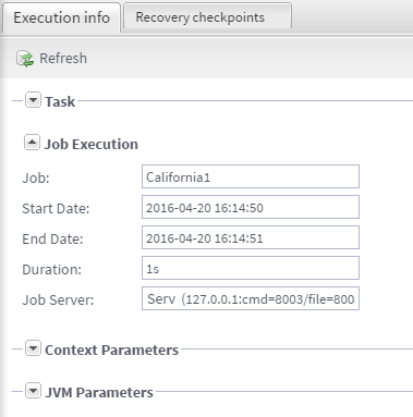 From the Error Recovery Management page, you can access a view that displays the execution information of any of the executions listed in the page.