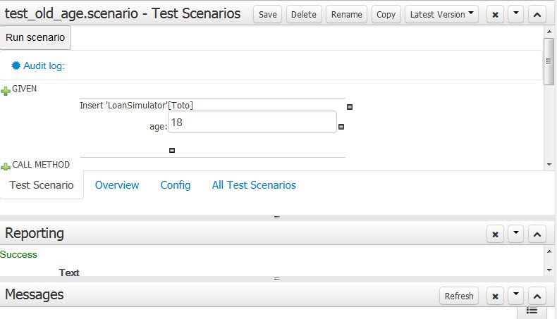 In the following example, you want to create a test scenario to test the business rule created in Creating business rules.