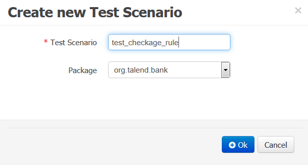 3. Enter a name for the test scenario in the Test Scenario field, select the package that hold the business rule to be tested from the Package list and click OK.