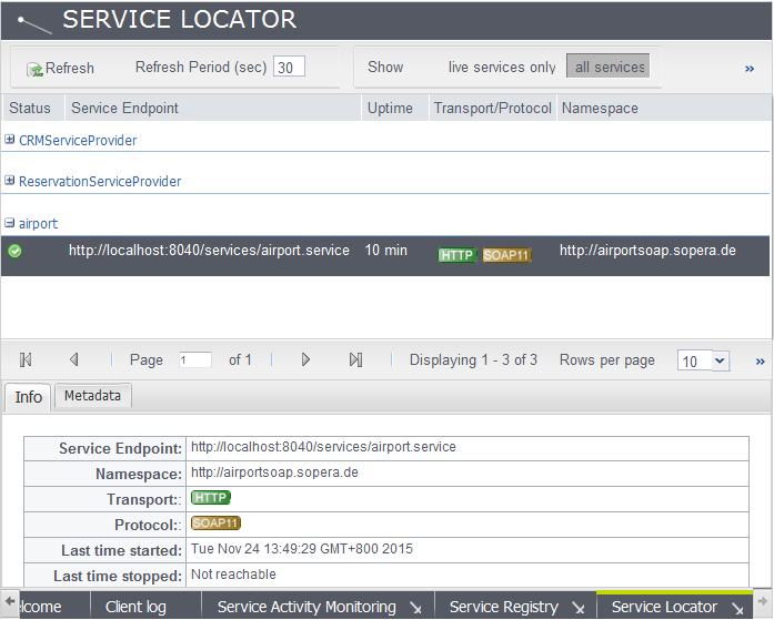 For more description about the Service Locator page, see Monitoring the Service endpoints.