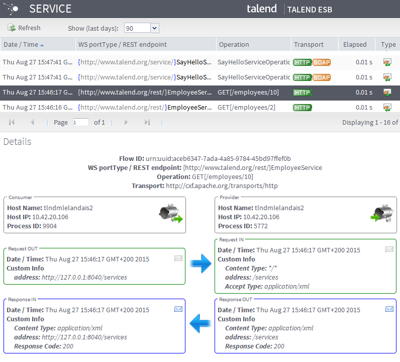 For example: One single request-response call could translate into 4 events in Service Activity Monitoring , two from the consumer side (Request-OUT and Response-IN) and two from the provider side (Request-IN and Response-OUT).