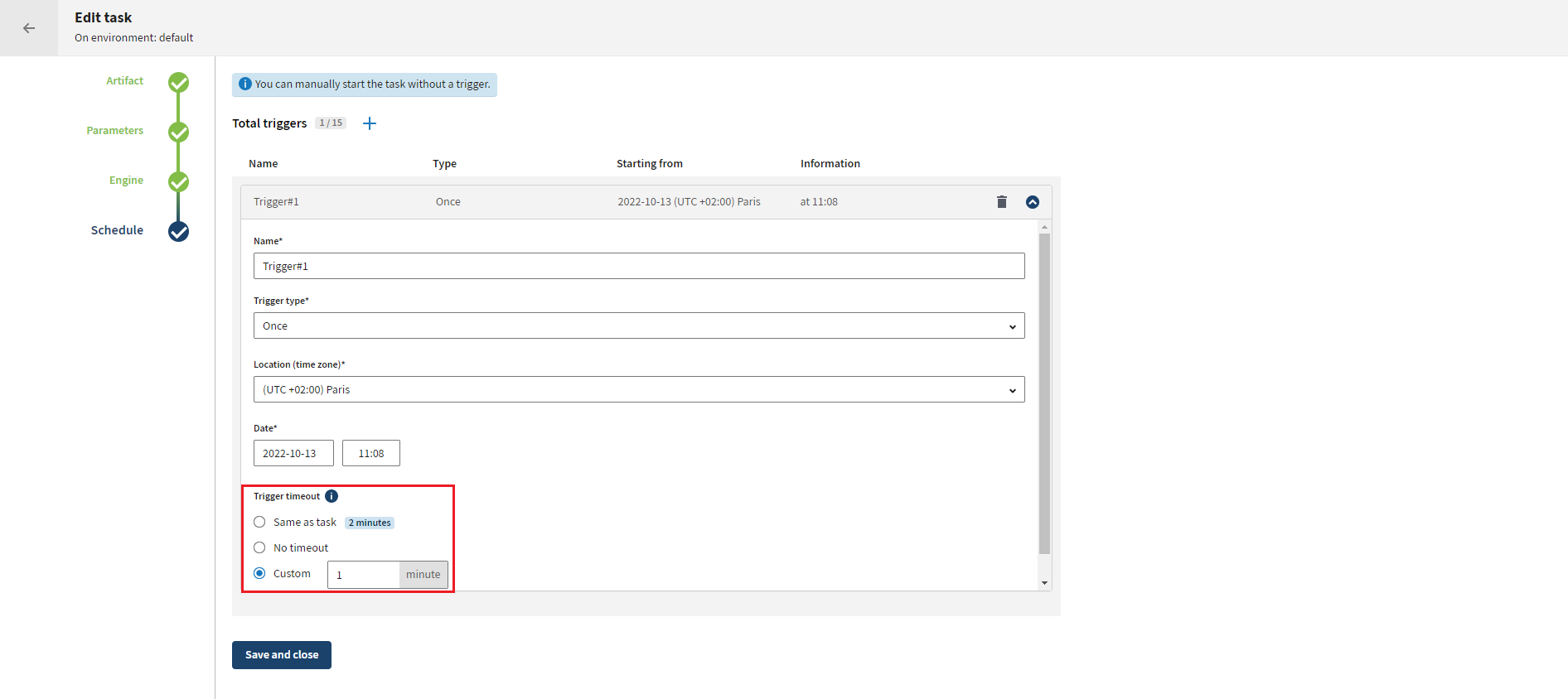 Trigger box in the Task details page. When
