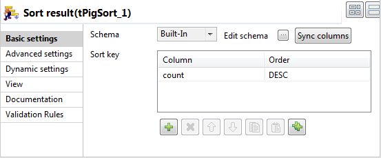 tPigSort component, configure the