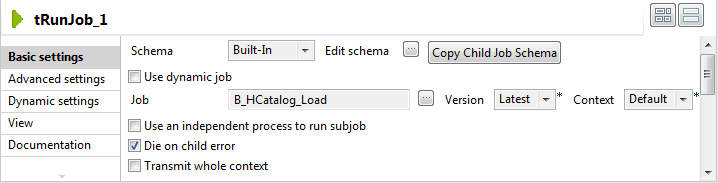 Drop a tRunJob component onto the design