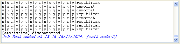 The console displays the data contained in the ARFF file, delimited using a vertical line (the default separator).