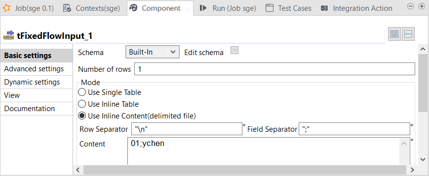 Double-click the tFixedFlowIput component to