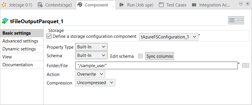 Double-click the tFileOutputParquet component to