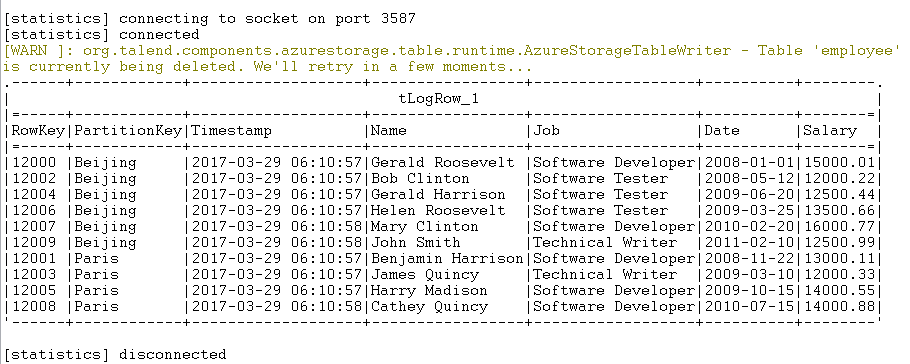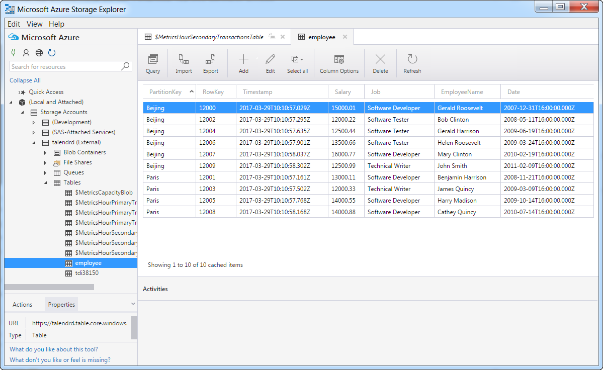 handling data with Azure Table storage, you can then execute the Job and verify the Job