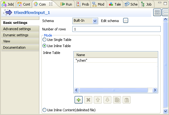 1. Double-click tFixedFlowInput to open its Basic settings view.