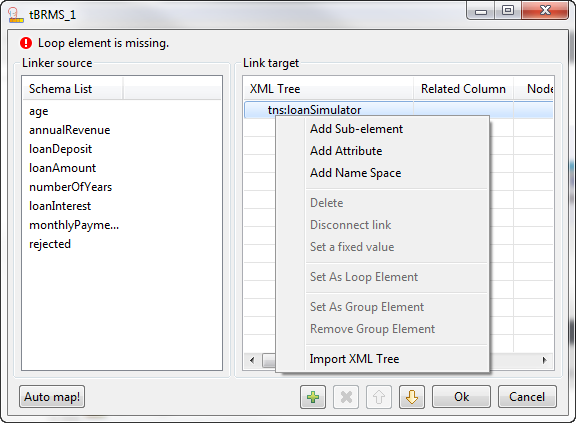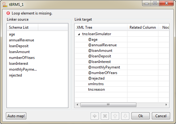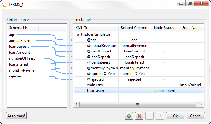 Alternatively, you can click Auto map! to concatenate automatically the columns between the Linker source and Link target.