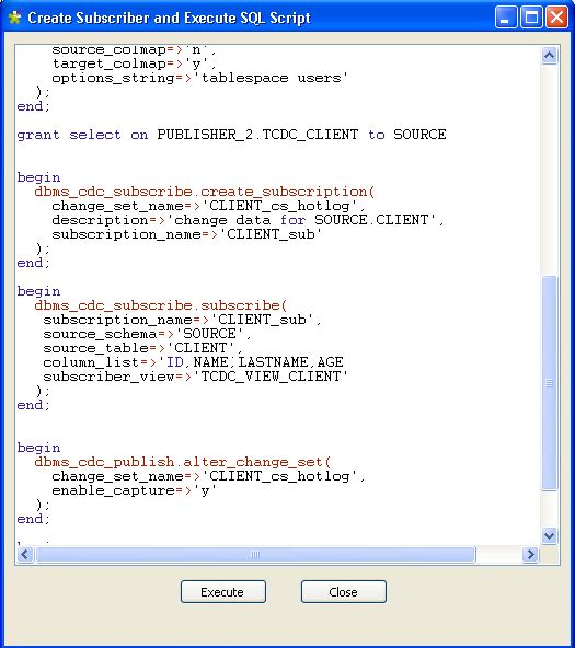 Click Create Subscriber. The Create Subscriber and Execute SQL Script dialog