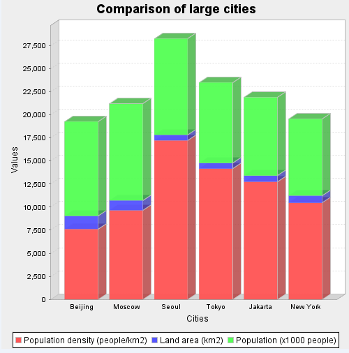 A bar chart is generated, showing a graphical comparison of the specified large cities.