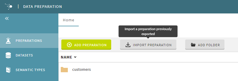 A good practice when using Talend Data Preparation is to set up at least two environments to work with: a development one, and a production one for example. When a preparation is ready on the development environment, you can use the Import/Export Preparation feature to promote it to the production environment, that has a different URL. For more information, see the section about promoting a preparation across environments.