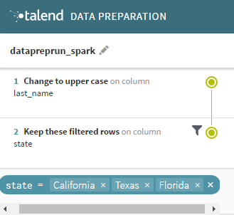 This simple preparation puts the customer last names into upper case and applies a filter to isolate the customers from California, Texas and Florida.