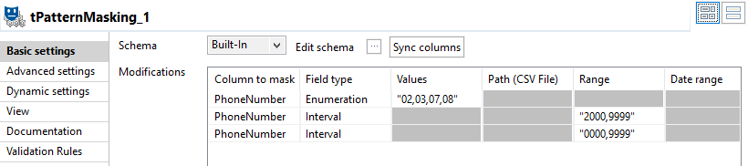 Configuring the masking operations
