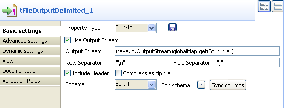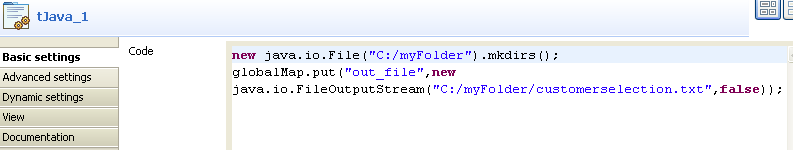 data stream to a local file which is defined in the Code area of tJava in this scenario.