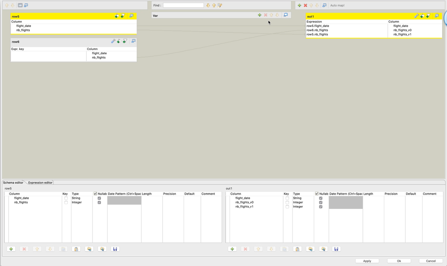 3. Double-click tMap to open the editor to join the calculation results from the two versions to visualize the performance.