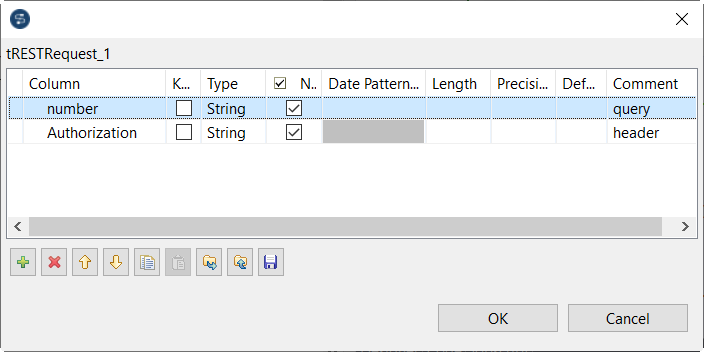If you specify URI parameters in the output flow schema, you might need to define what type of parameter it is in the Comment field of the schema. By default, if you leave the Comment field empty, the parameter is considered as a Path parameter. Below is a list of supported Comment values: