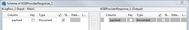 In the Type column of this payload row, select Document as the data type. The corresponding XML root is added automatically to the top table on the right side which represents the output flow.