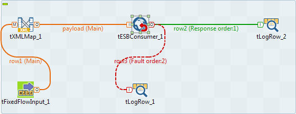Connect tESBConsumer_1 to tLogRow_1 and tLogRow_2.