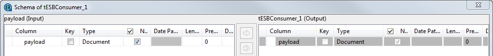 In the Basic settings of the tESBConsumer, set the Input Schema as follows: