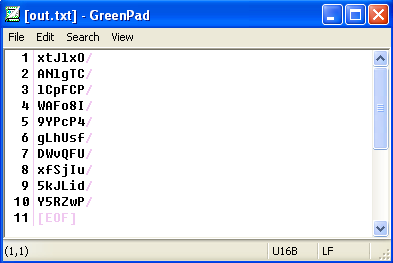 The encoding type of the file in.txt is transformed and out.txt is generated with the UTF-16 encoding type.