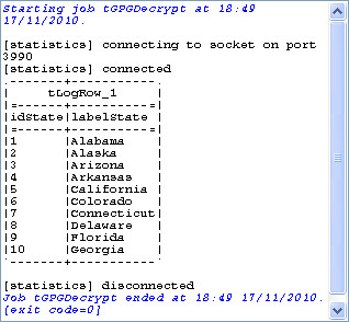 The specified file is decrypted and the defined number of rows of the decrypted file are printed on the Run console.