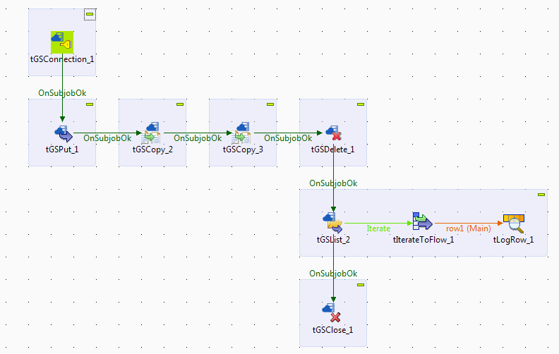 The scenario describes a Job which uploads files from the local directory to a bucket in Google Cloud Storage, then performs copy, move and delete operations on those files, and finally lists and displays the files in relevant buckets on the console.