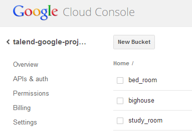 Prerequisites: You have purchased a Google Cloud Storage account and created three buckets under the same Google Storage directory. In this example, the buckets created are bighouse, bed_room, and study_room.