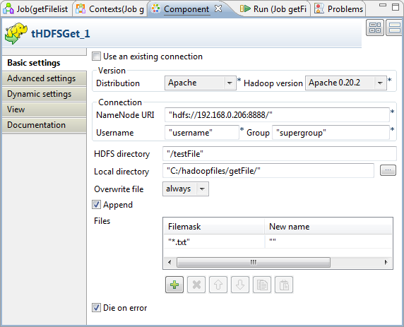Double-click tHDFSGet to define the