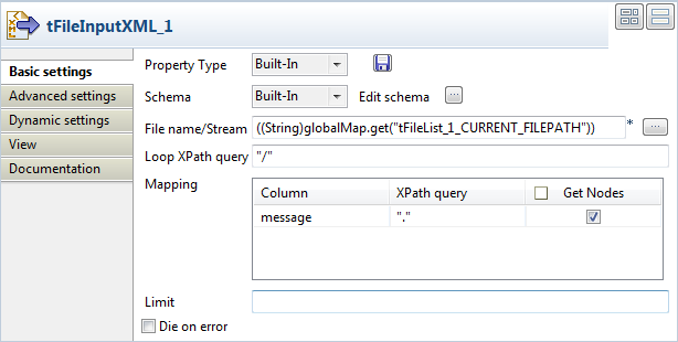 Double-click the tFileInputXML