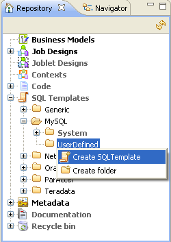 In the Repository tree view, expand SQL Templates and MySQL in succession.