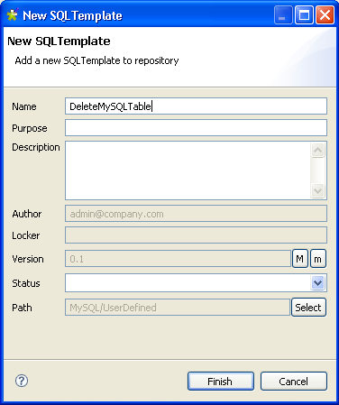 Enter a name for the new SQL template and fill in the other fields If needed and then click Finish to close the wizard.