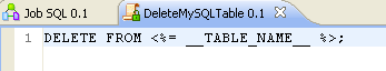 The following Java scenario creates a three-component job that iterates on given table names from a MySQL database using a WHERE clause. It then deletes the content of the tables directly on the DBMS using a user-defined SQL template.