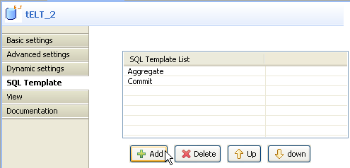 The next step is to add the new user-defined SQL template to the SQL template list in the tELT component.