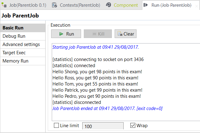4. Open the Basic settings view of the tRunJob component to configure its parameters.