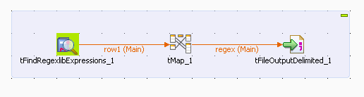 This Job can also be generated automatically from the Patterns > Regex node in the DQ Repository tree view. For further information about how to generate a Job to recuperate regular expressions, see the Talend Studio User Guide.