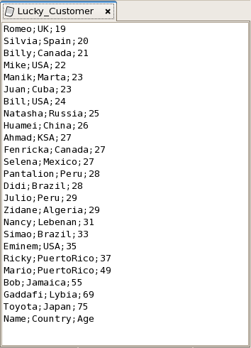The Lucky_Customer file is generated containing the data in ascending order based on Age.