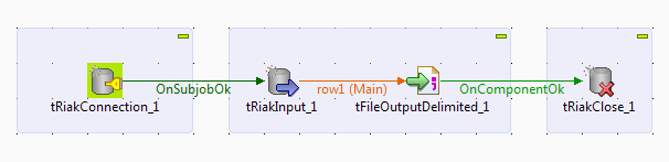The following scenario describes a Job which reads data from a Riak bucket and writes it into a local txt file.