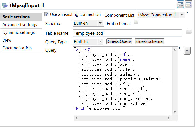 the tMysqlSCD component.
