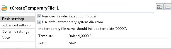 temporary file name which should contain the characters XXXX. In this example, it is talend_XXXX.